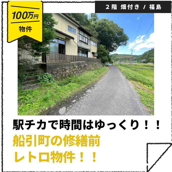 福島県田村市 駅チカなのに時間はゆっくり!船引町の修繕前レトロ物件! 2026.02.12 この物件を見る 【受付終了】吹き抜け・縁側・別棟風呂!再生ポテンシャル∞のBIG古民家 2025.12.26 この物件を見る