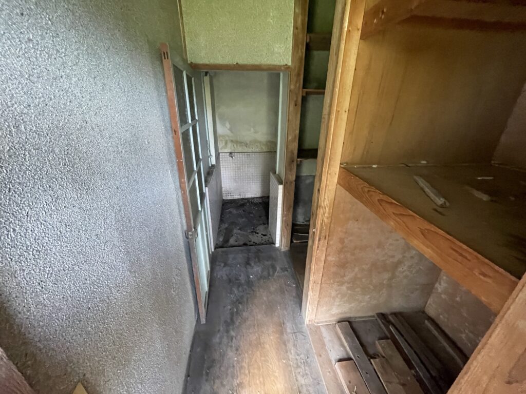 奥にある収納とか、壁の雰囲気とか、生活の痕跡がそのまま残ってる感じがして。
